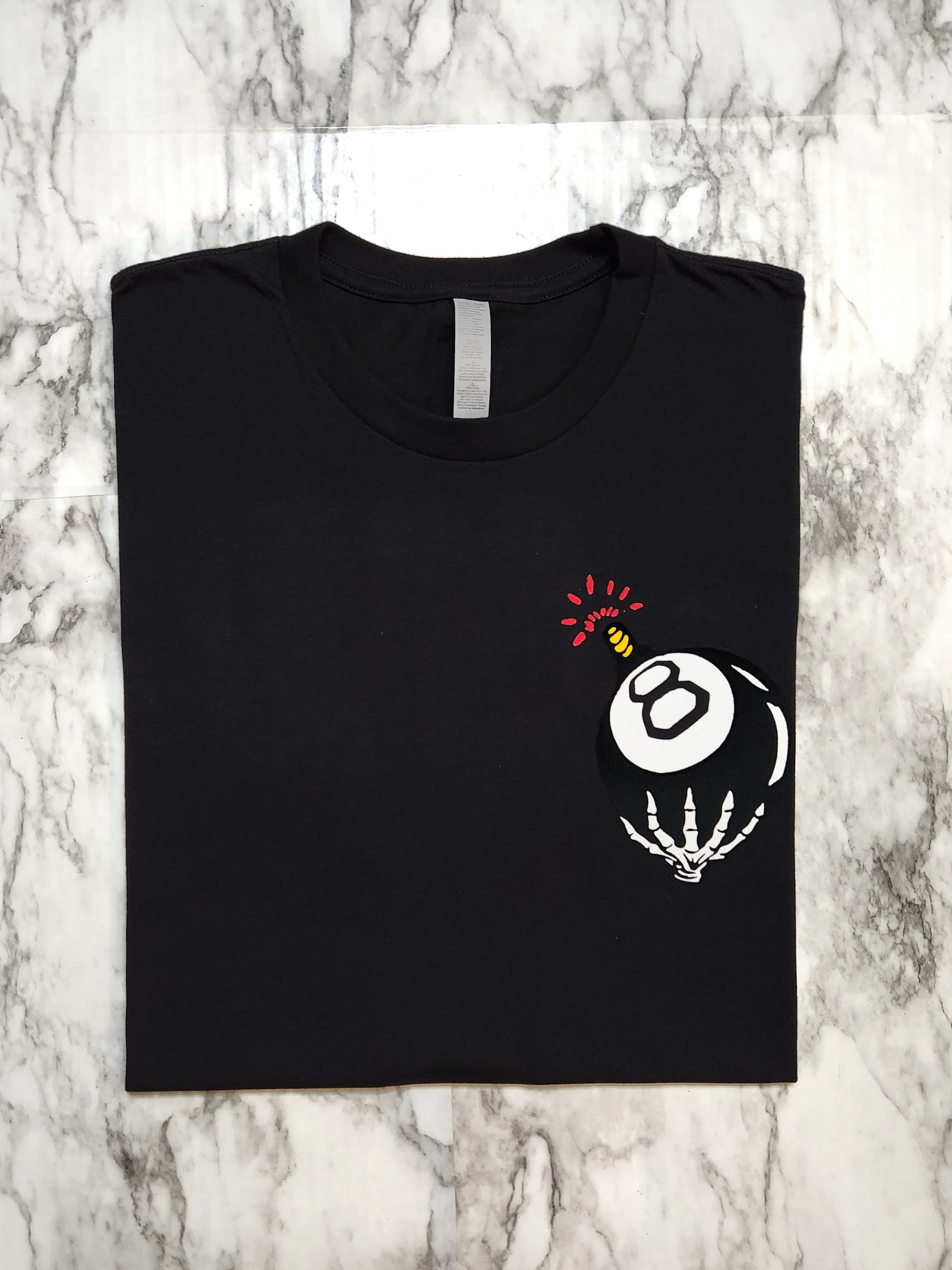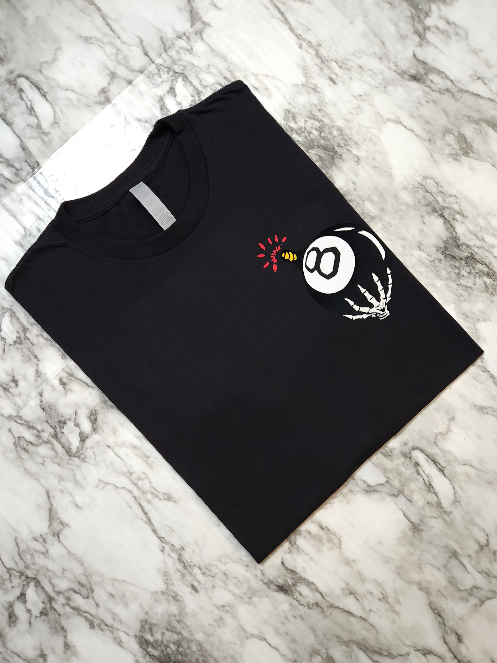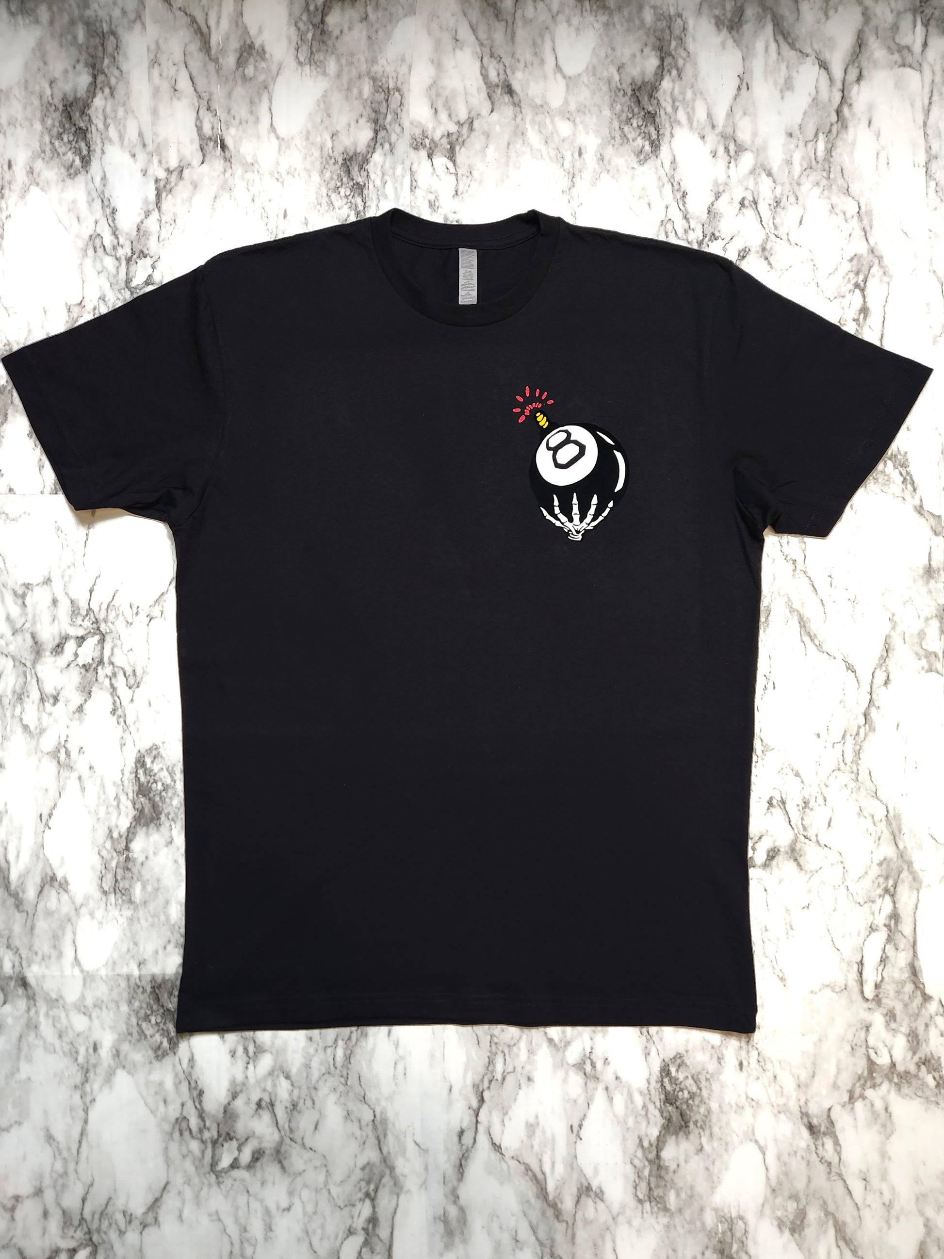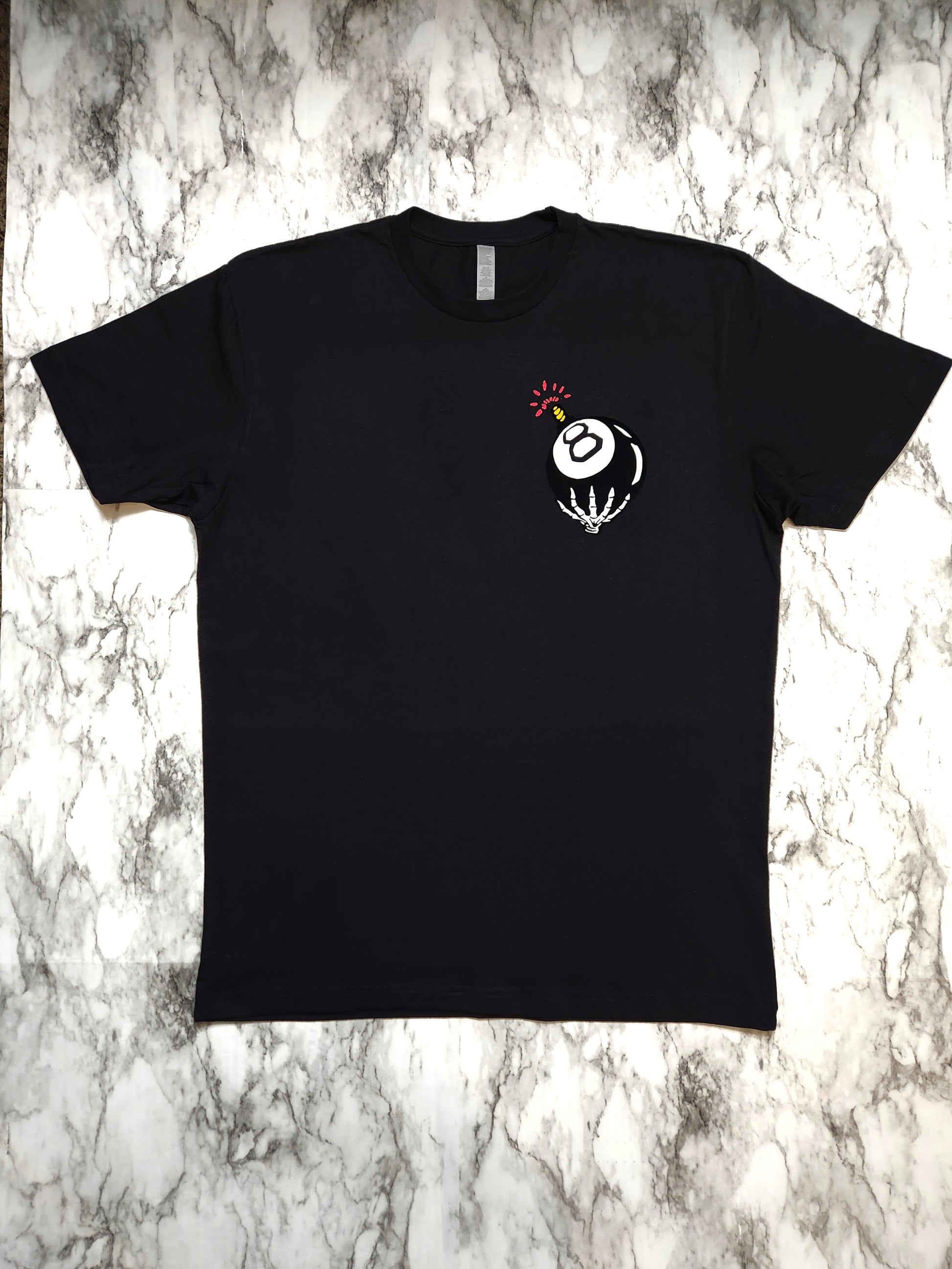 The 8 Ball Pocket tee keeps it low-key but loaded. A clean black base sets the stage for a bold flock pocket hit — skeletal hand gripping the 8-ball, textured and unapologetic. Everyday wear with a subtle flex, built to carry weight without saying a word.