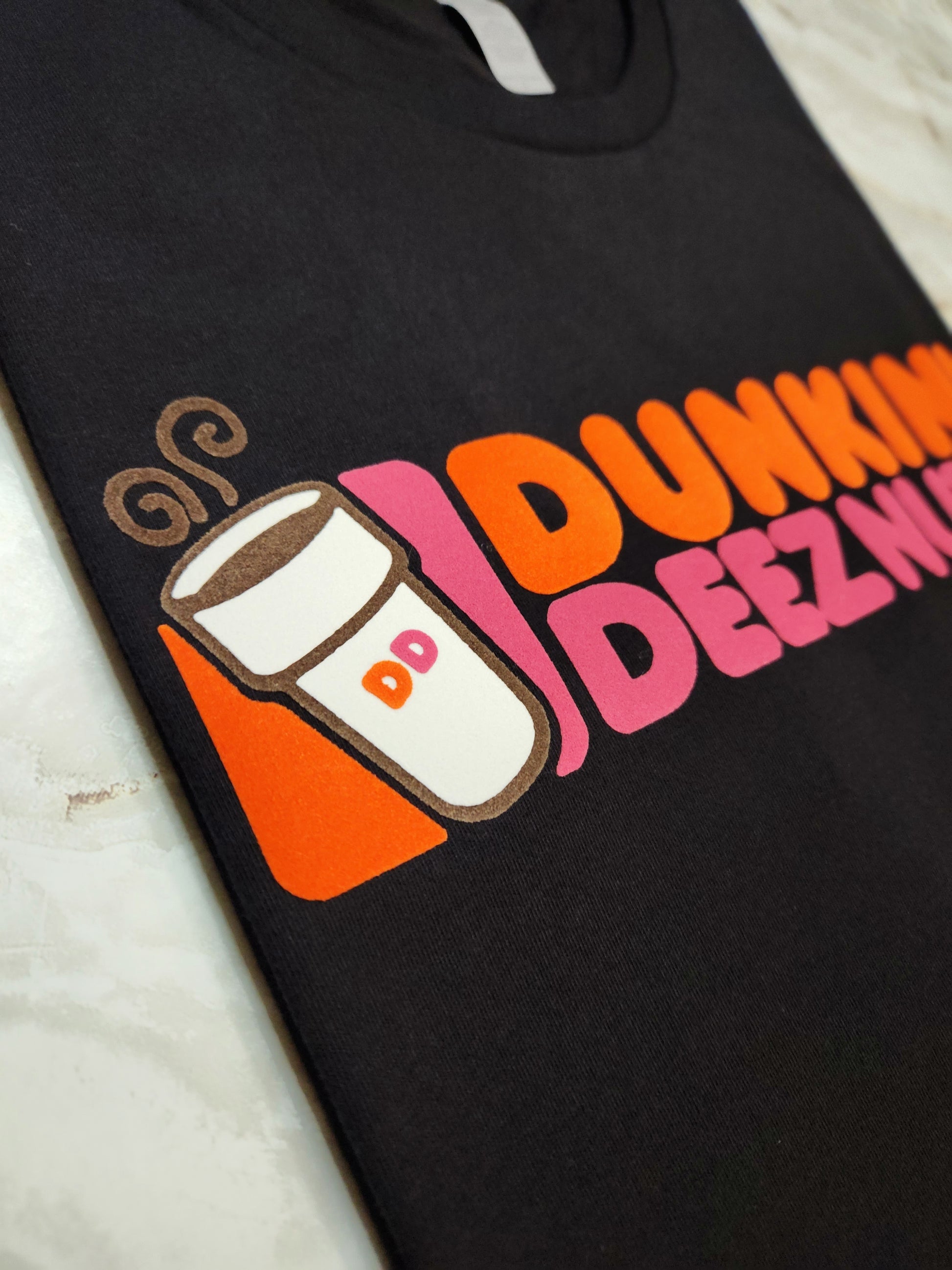 The “America Runs” tee takes a bite out of pop culture and spits it back with streetwise humor. What starts as a familiar corporate promise gets flipped into something raw, witty, and unapologetic—because around here, the grind doesn’t run on coffee, it runs on hustle. Finished with bold flock design on a premium cotton body, this drop balances satire with style, turning a mainstream logo into underground code.