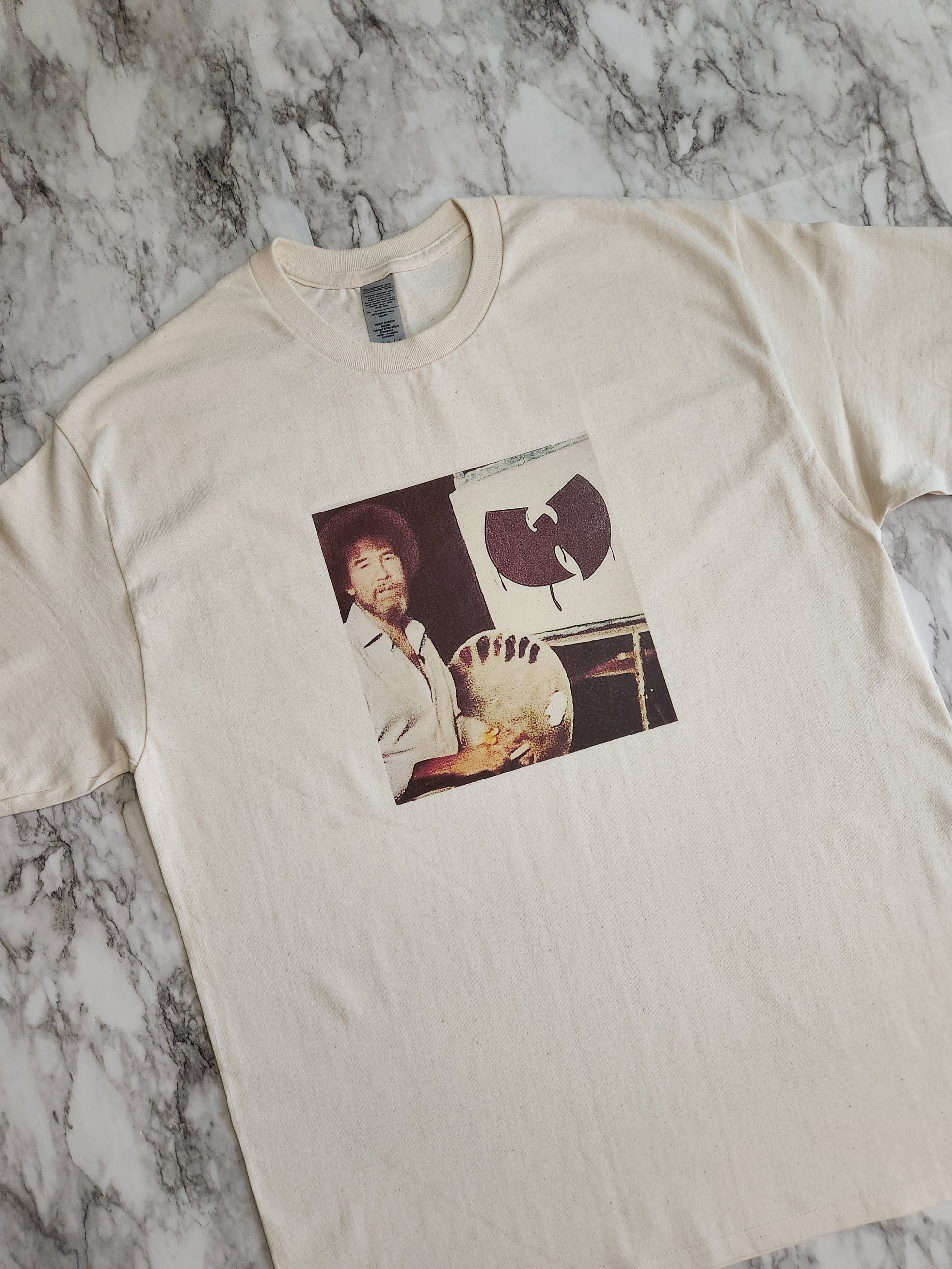 The WuRoss tee on natural cotton blends vintage art classroom calm with raw cipher grit. The front print distorts a familiar face into something sharper, flipping comfort into commentary. Finished with a flock “W” stitched at the hem, it’s a nod to legacy and a mark of exclusivity. Neutral tones meet Hip Hop heavyweight presence — this piece wears like archive art pulled from the streets.