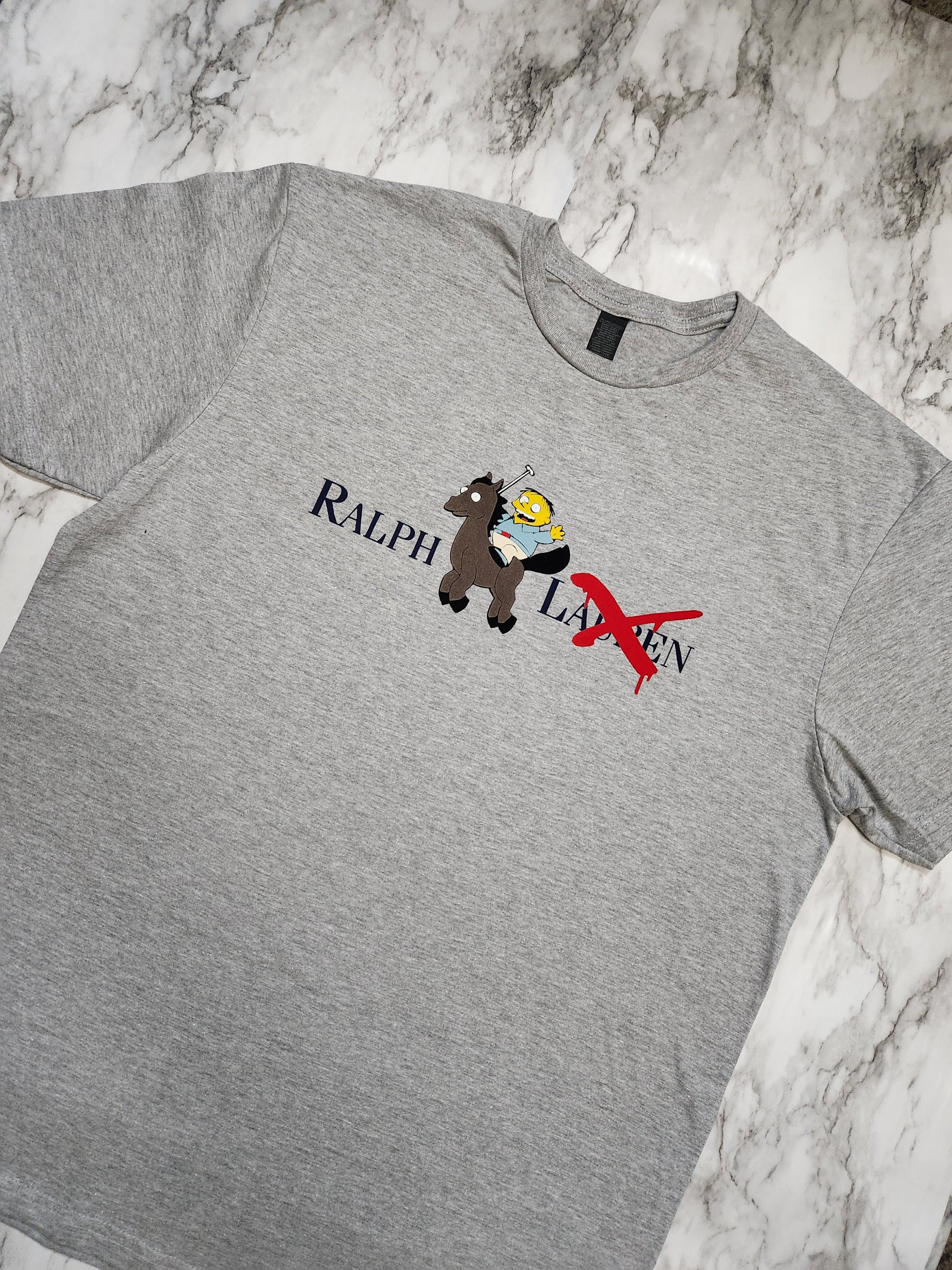 The It Ain’t Ralph Tho tee flips a viral moment into a wearable punchline. A classic logo gets remixed with everyone’s favorite slow kid riding out, while the “Lauren” gets crossed clean with a bold red X. All flock finish keeps the parody rich in texture and sharper than the original ever was.
