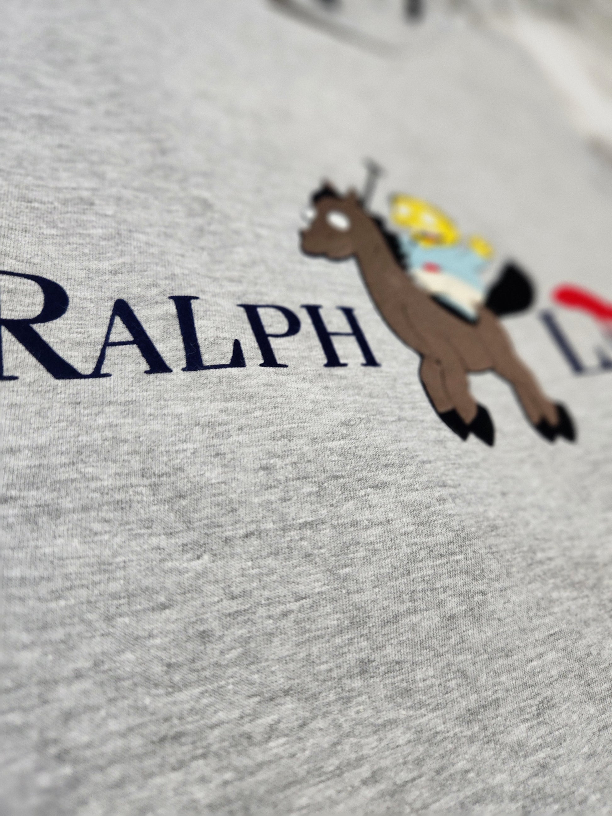 This isn’t about playing by fashion house rules — it’s about rewriting them. Heather grey gives it the vintage backdrop, the graphic makes it unforgettable. It’s not Ralph… and that’s exactly the point.