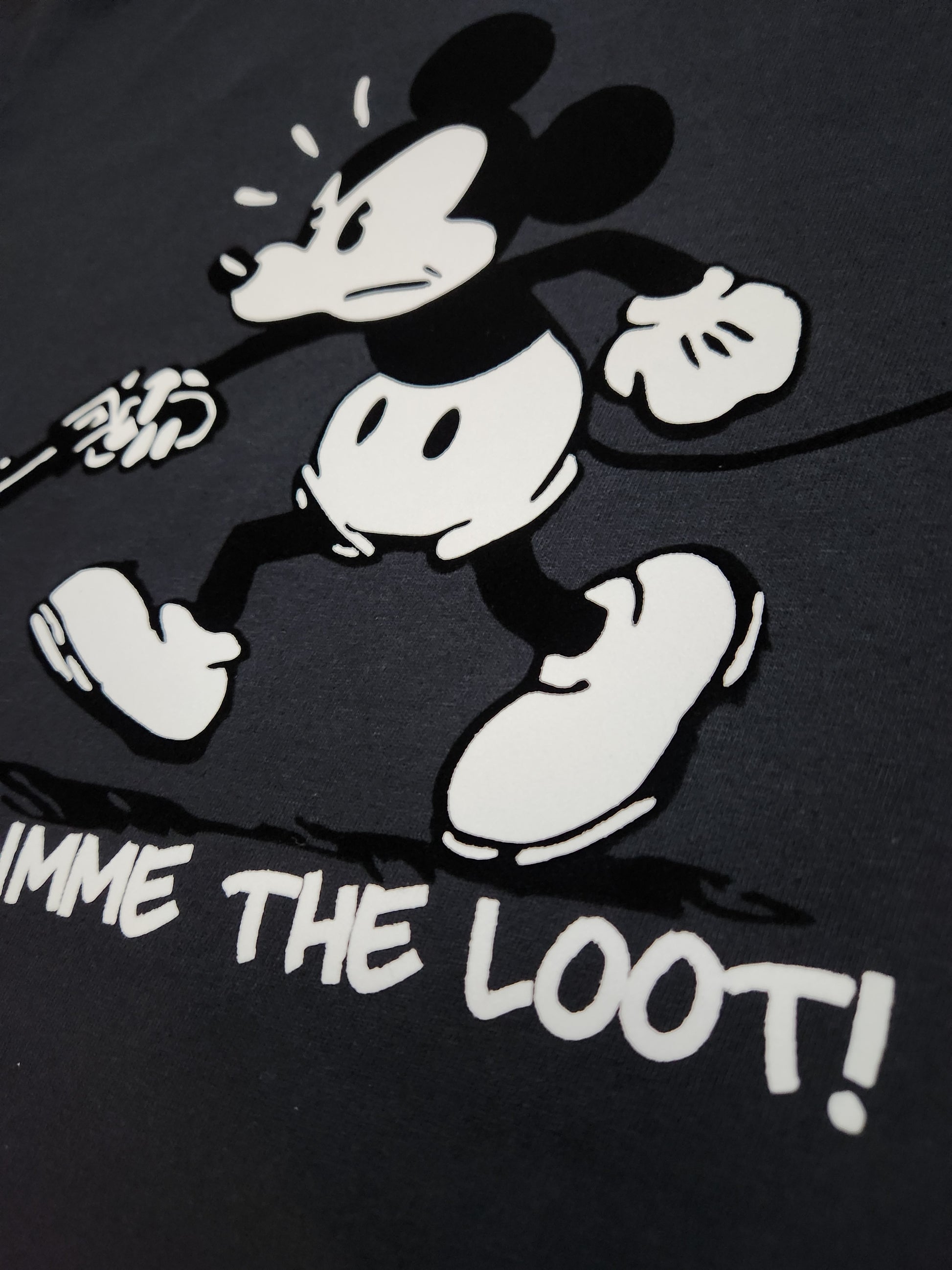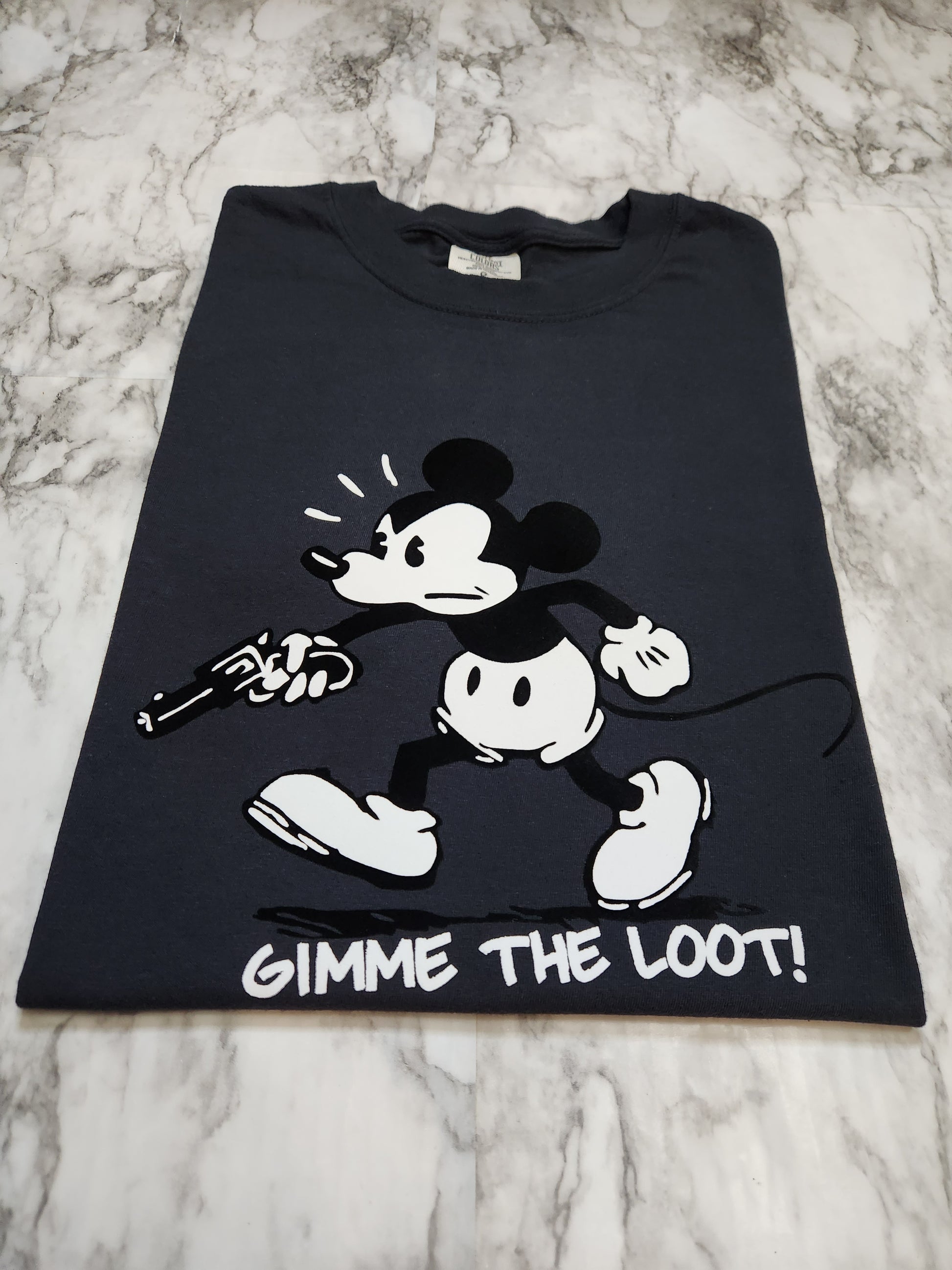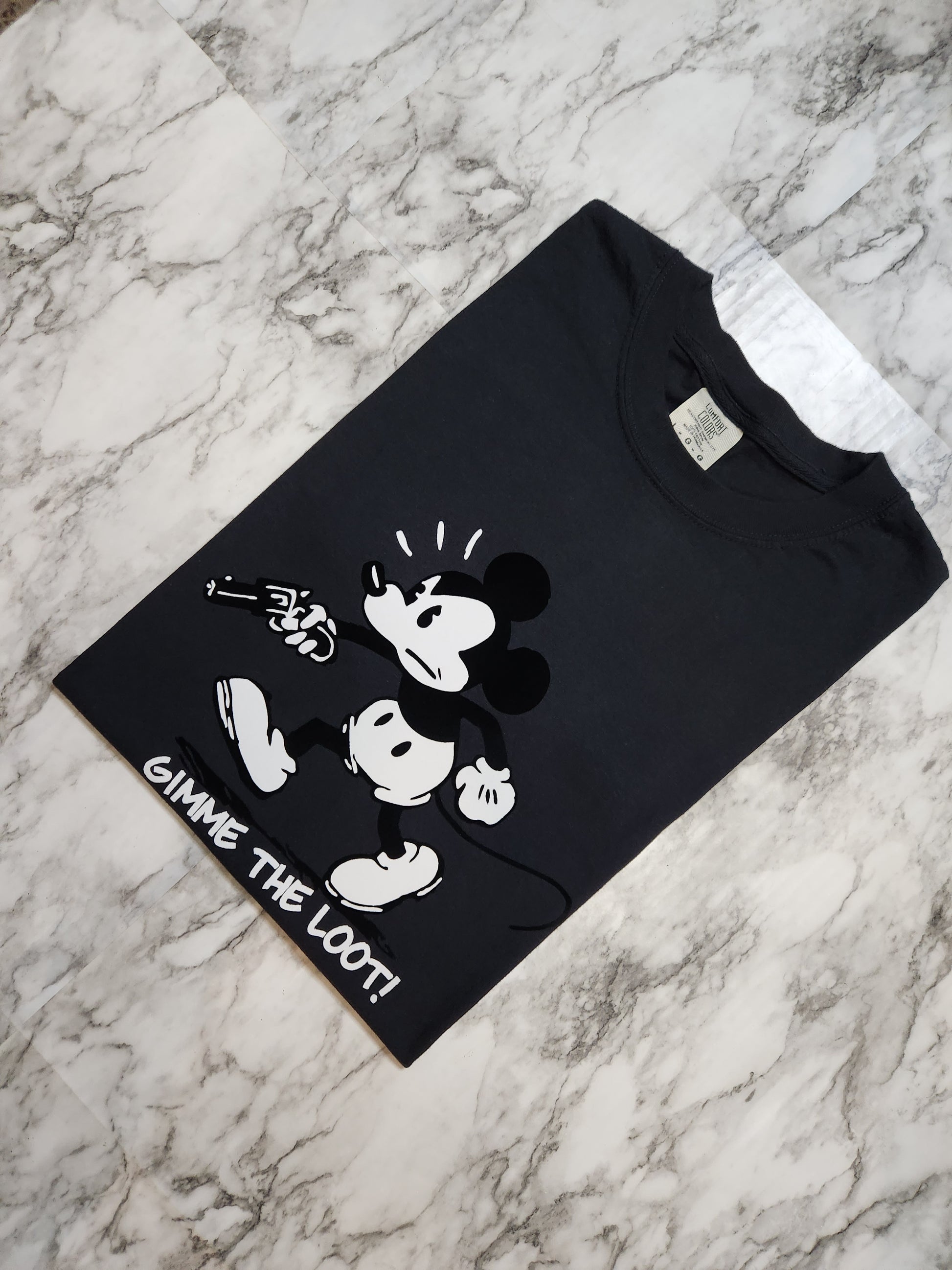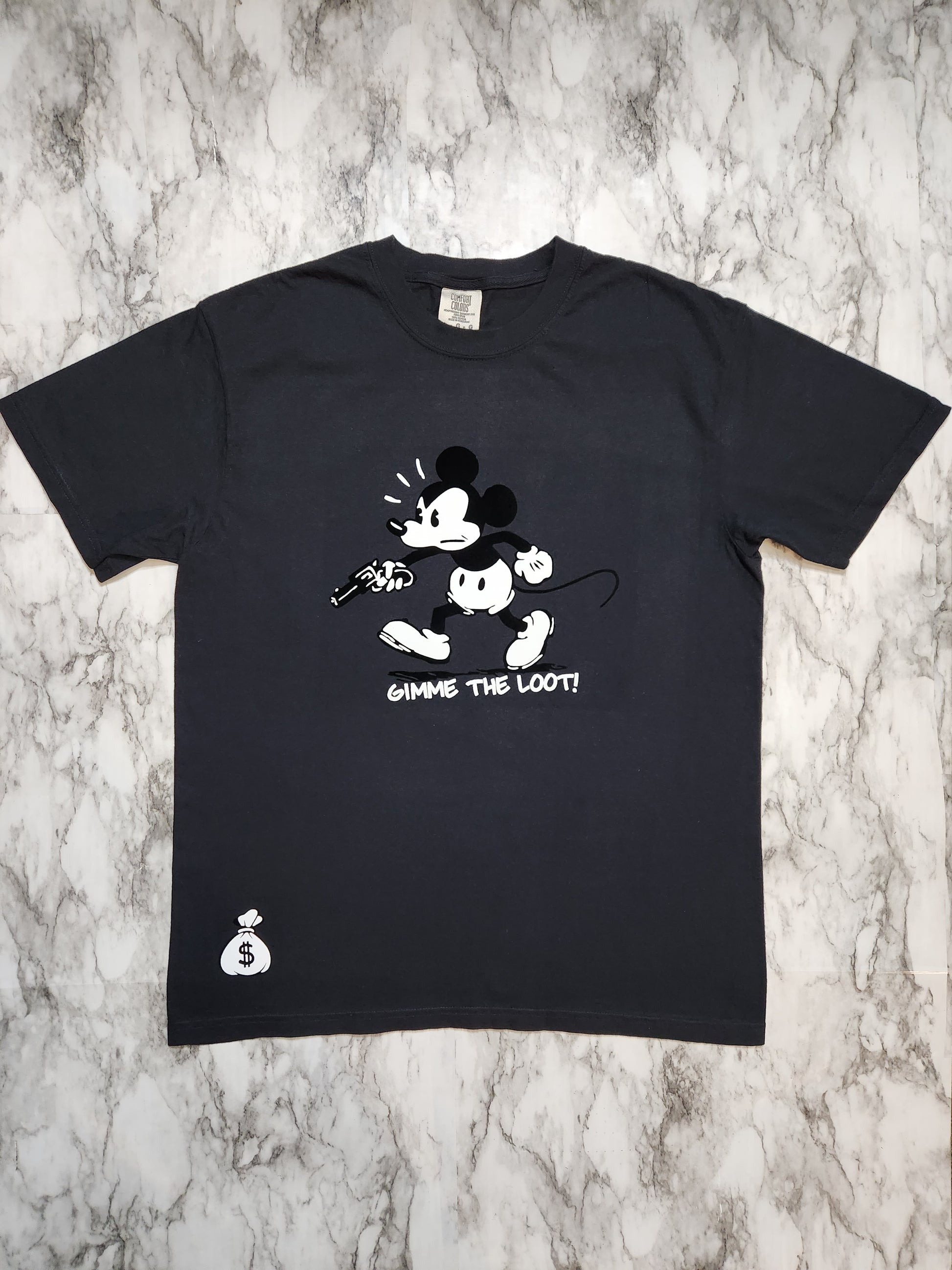 The Gimme the Loot tee flips nostalgia into a stick-up. A bold flock design drops vintage cartoon mischief with a sharper edge, holding heat and demanding respect. Anchored by a money bag accent at the hem, it’s animated on the surface but all hustle underneath — a reminder that every move on the comes with intent.