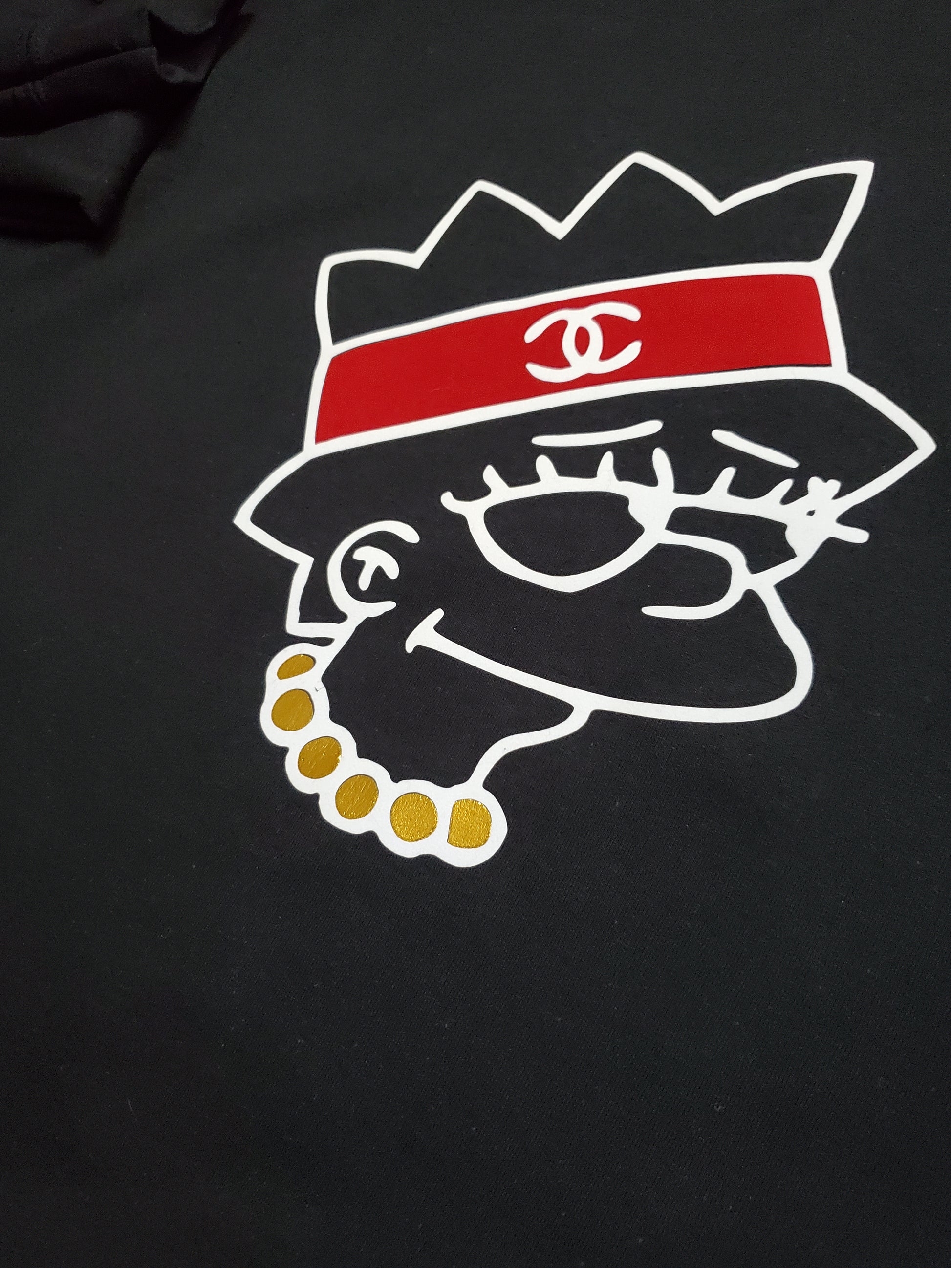 The Lisa Loves Money crew keeps it simple but never silent. A heavyweight black base carries a clean flocked graphic that blends attitude, nostalgia, and street-level charm. No noise — just a crisp design that hits with texture and personality.
