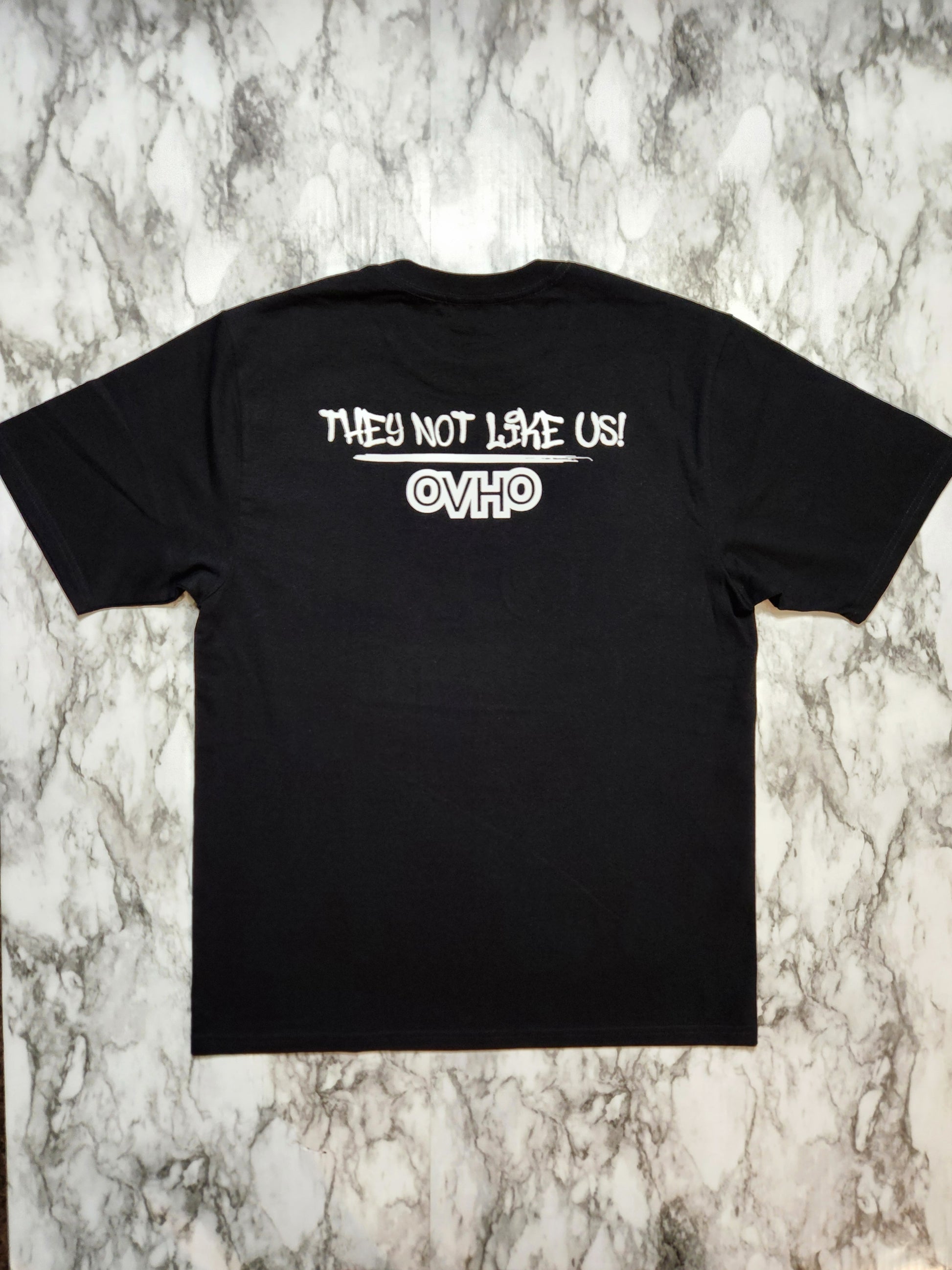 The F.A.N. tee pulls no punches. A flipped logo hits the chest in bold flock, a remix that calls it like it is. On the back, “They Not Like Us!” cements the message — a nod to battle lines drawn and bars that hit harder than branding.